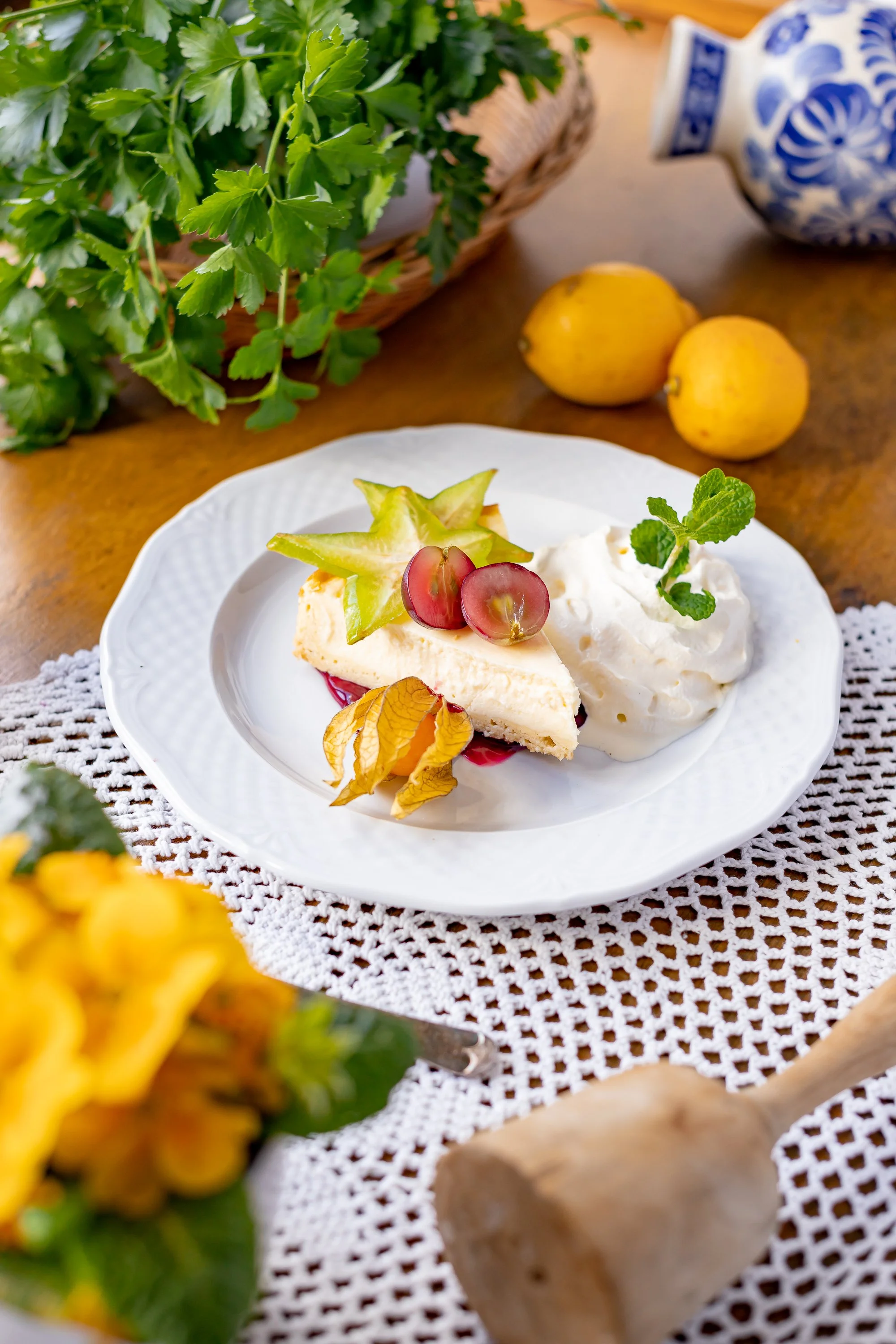 Cheesecake with raspberry sauce and whipped cream